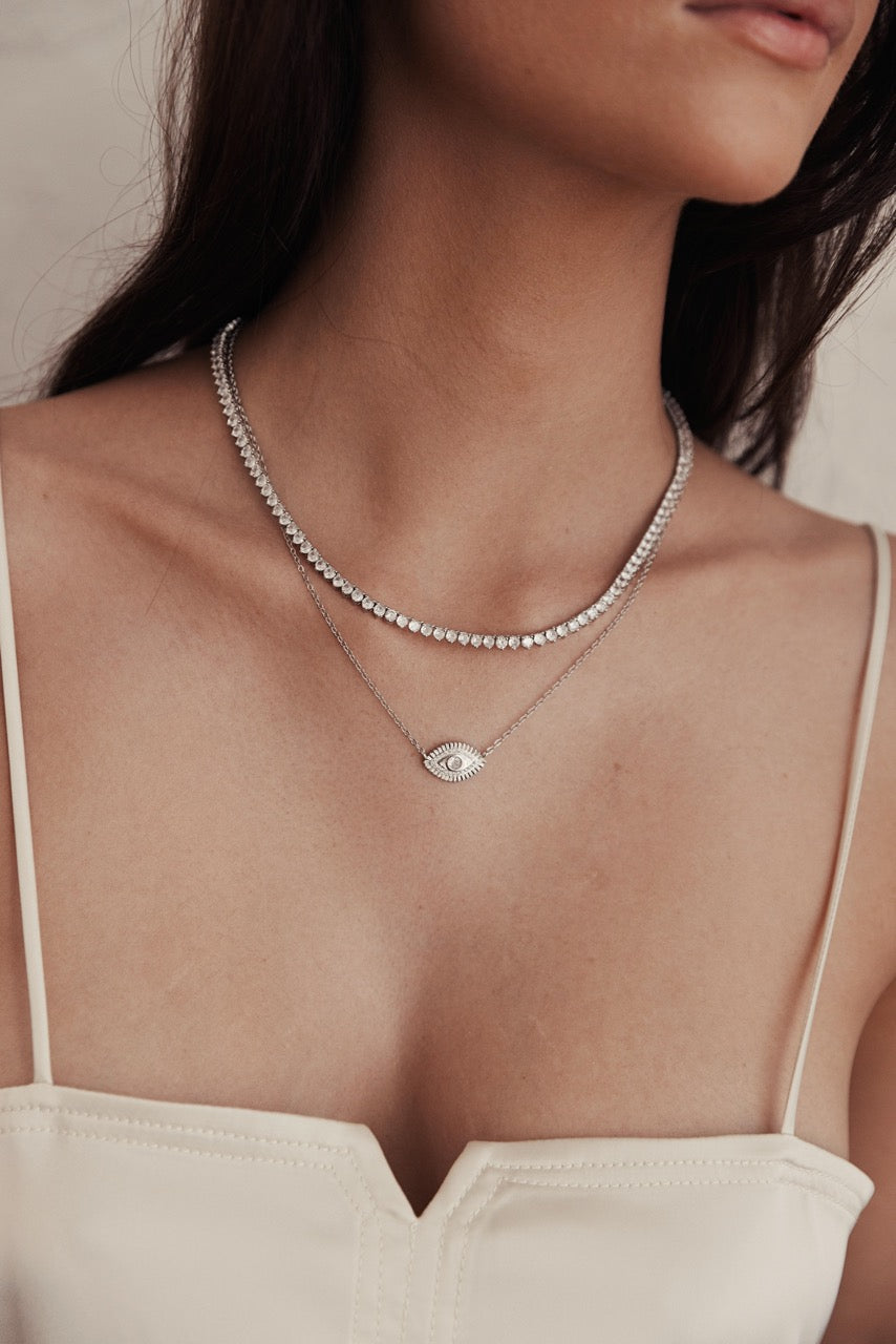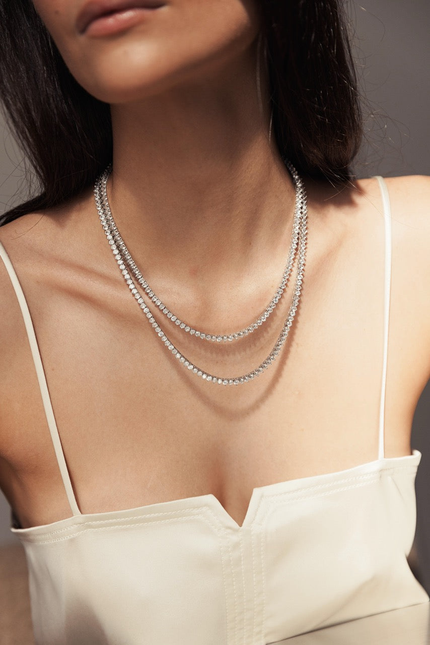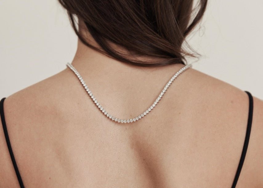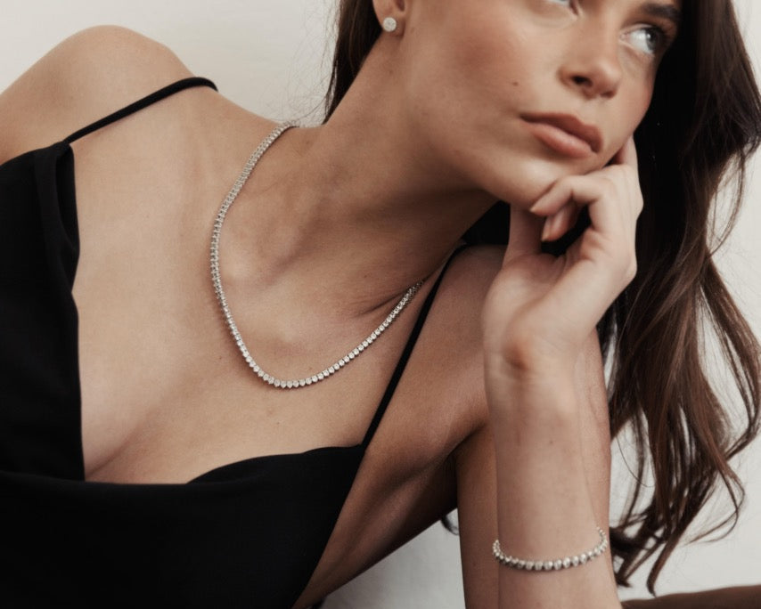 Crafted to capture the brilliance of real diamonds, our Classic Tennis Necklace features high-grade, precision-cut stones that reflect light with captivating clarity. Each setting is designed to emulate the elegant sparkle and weight of fine diamond jewellery, without the luxury price tag.