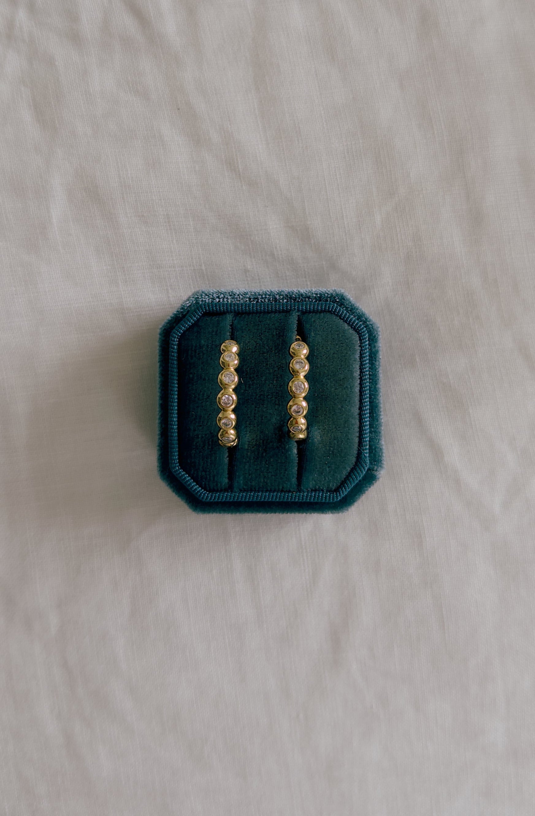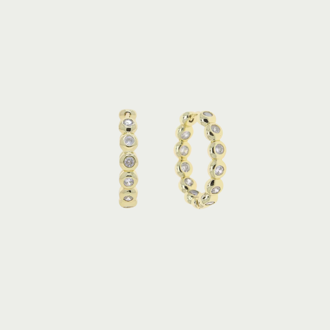 With a delicate silhouette and radiant sparkle, the Lys earrings are your new go-to for elevated everyday styling. Featuring a seamless row of bezel-set 5A cubic zirconia stones, these hoops are crafted from gold-plated brass for a luxe finish.