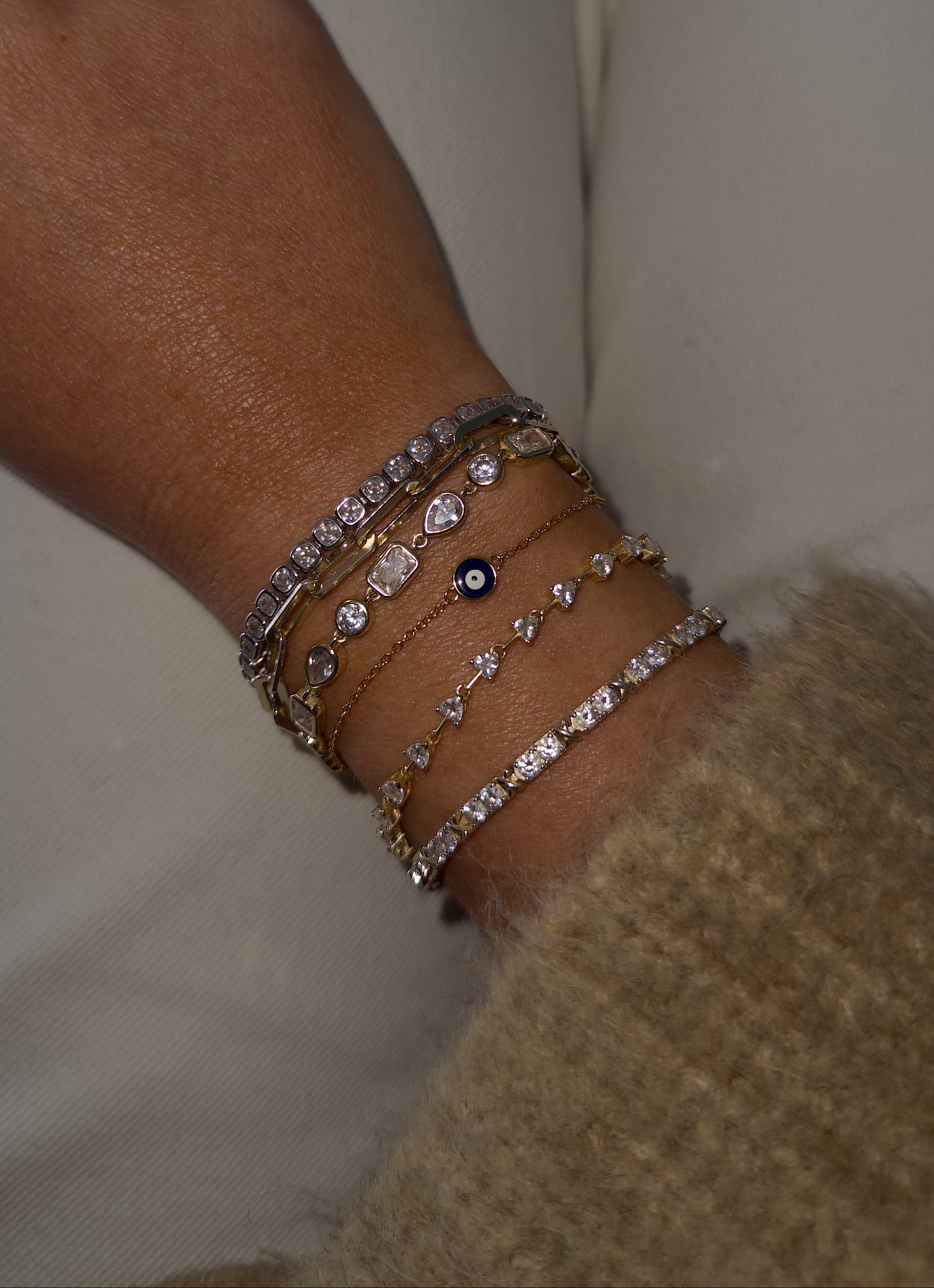 A romantic twist on a timeless classic. Crafted from 925 sterling silver and set with a delicate row of heart-shaped cubic zirconias, the Amoré Tennis Bracelet is designed to capture attention with its soft sparkle and sentimental charm.