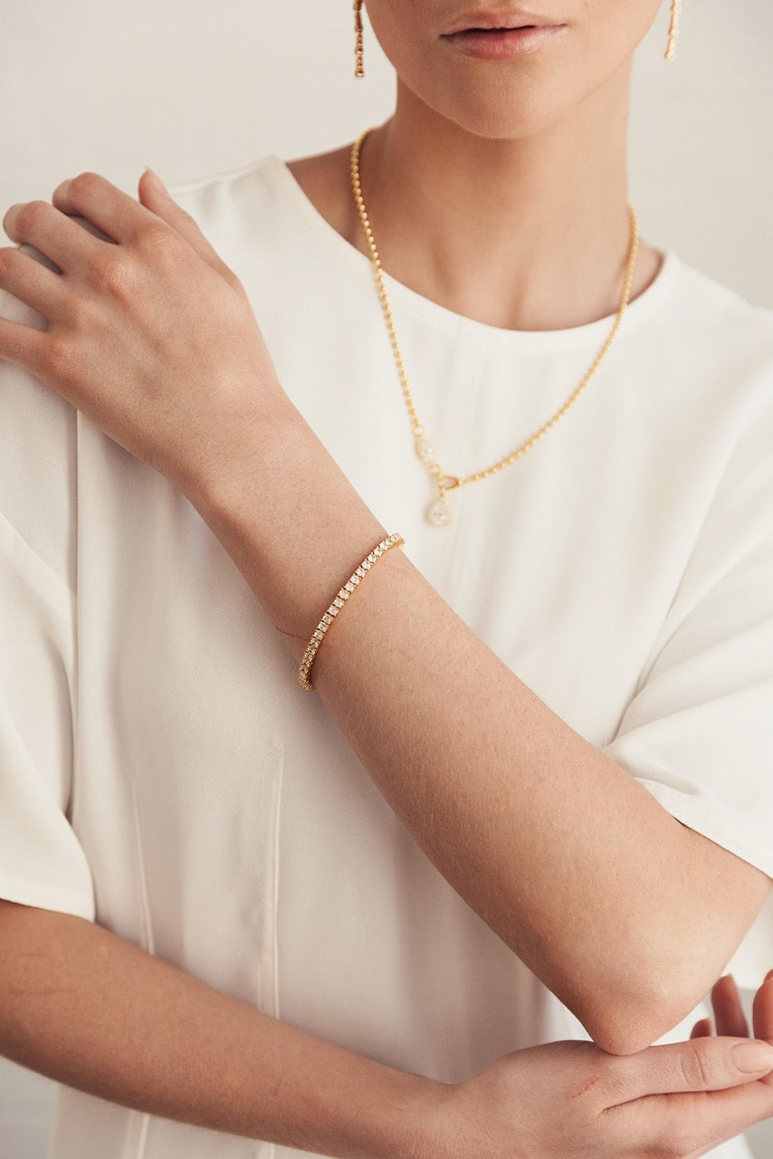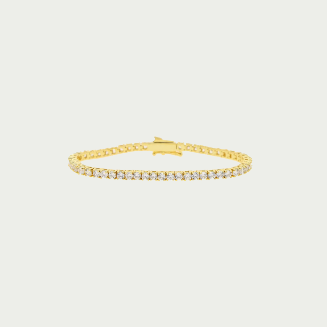 An icon for a reason. The Classic Tennis Bracelet is the epitome of refined simplicity, crafted in brass and finished with 18k gold plating, then hand-set with brilliant 5A cubic zirconia for maximum sparkle.