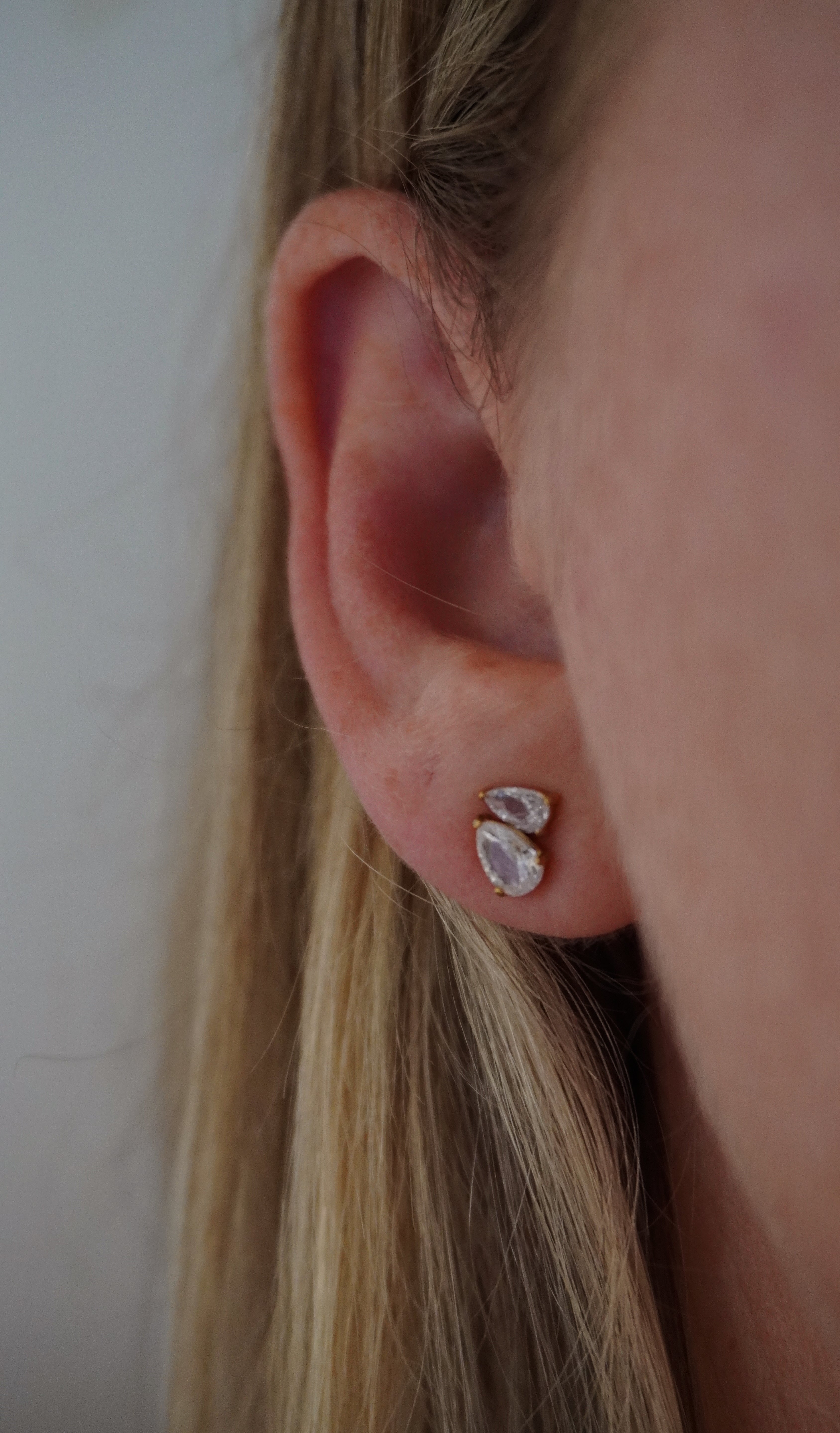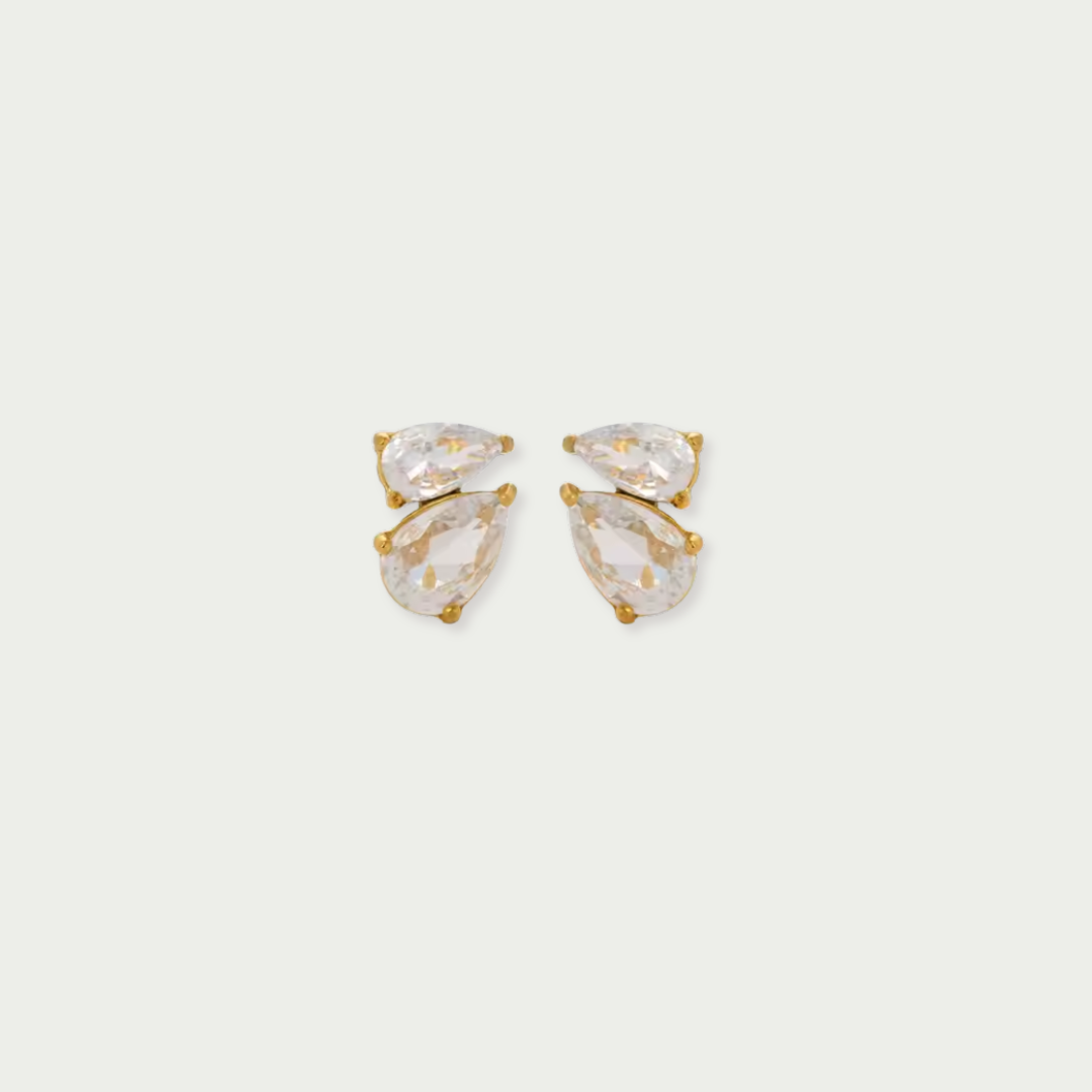 The Toi et Moi earrings are the perfect everyday studs with a touch of elegance. Featuring two pear-shaped crystals set side by side in 18K gold-plated stainless steel, they symbolise the beauty of duality — "you and me."