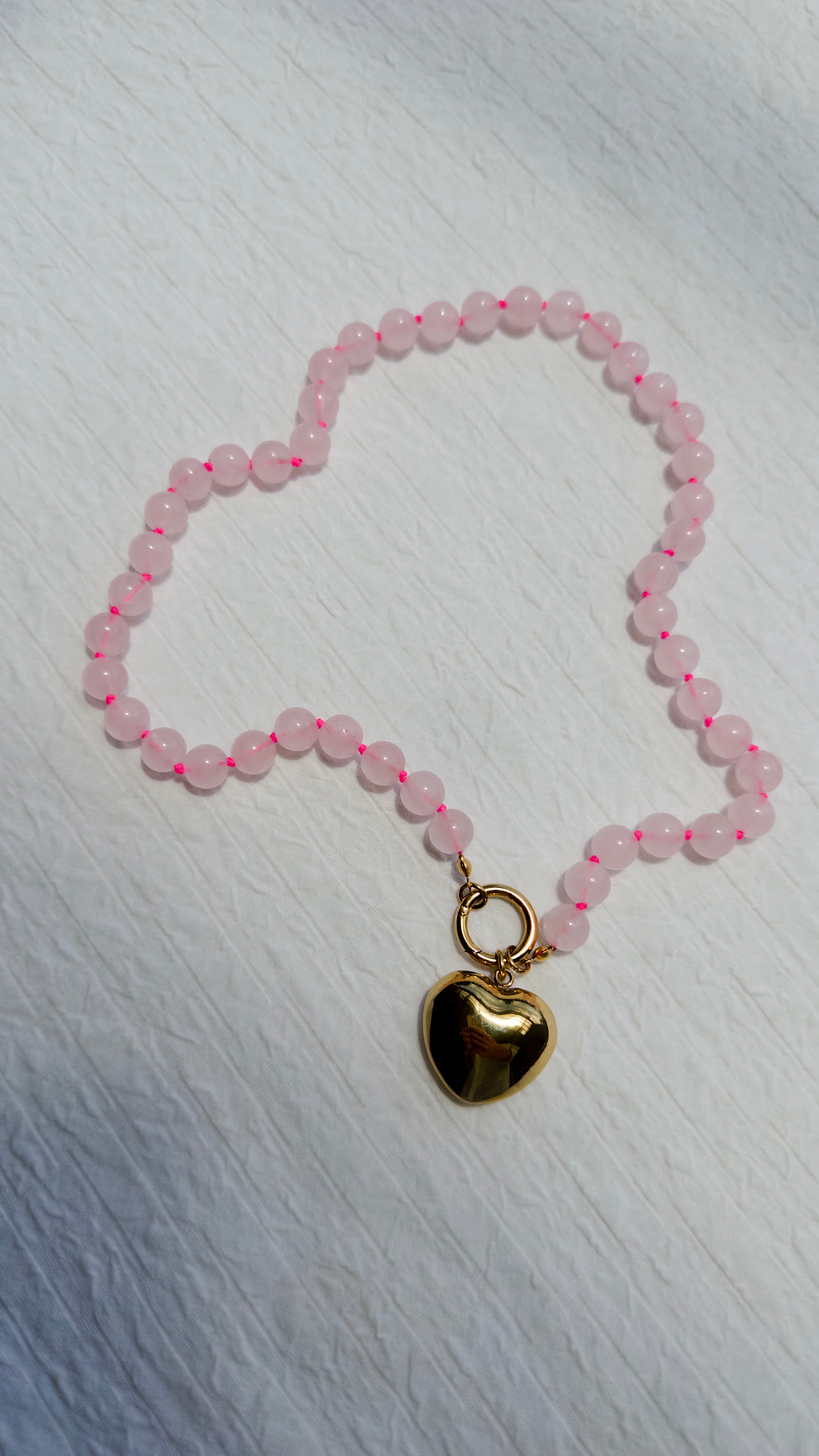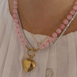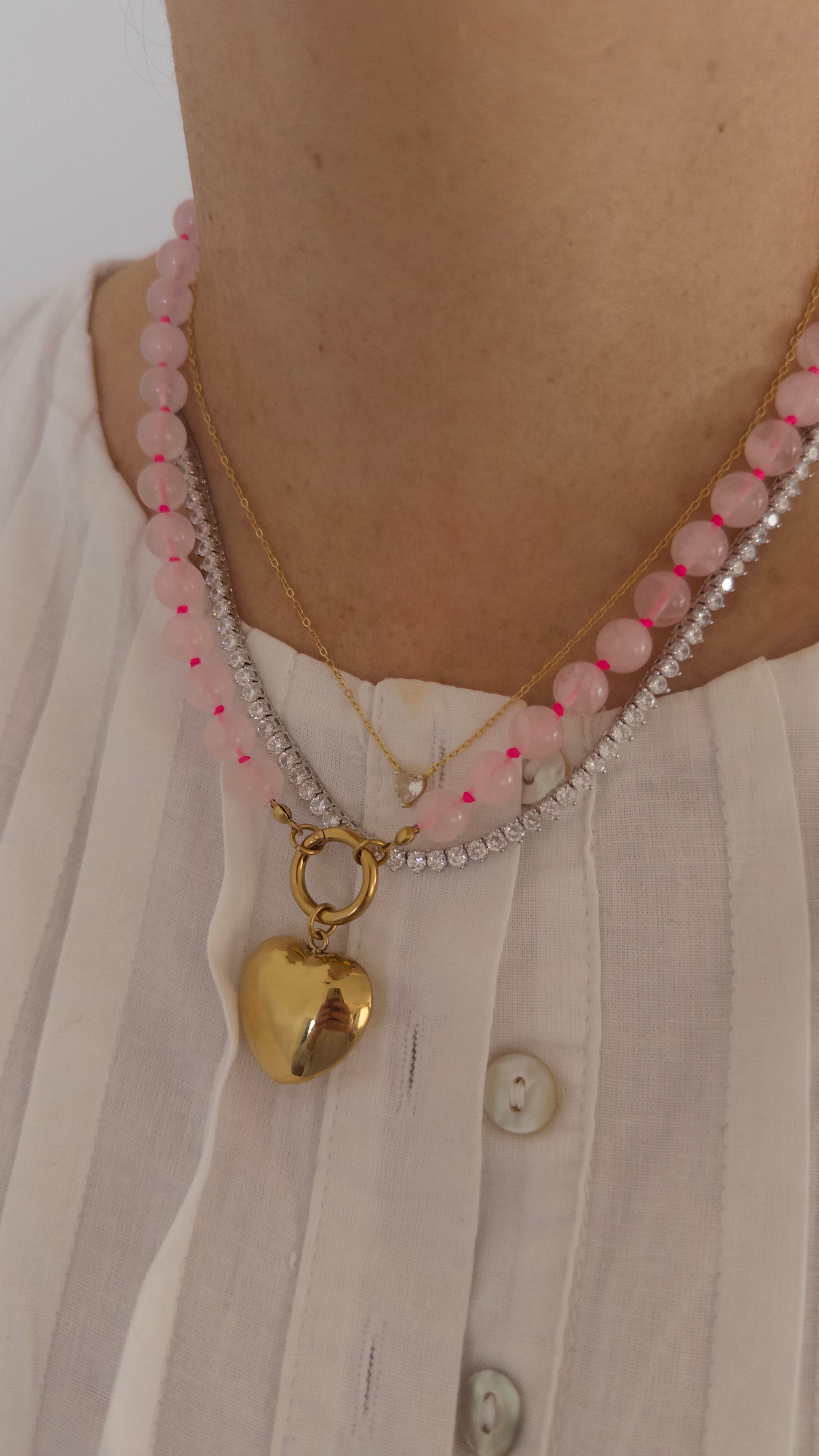 The Claudette Charm Necklace is a timeless statement piece designed to elevate your everyday jewellery wardrobe. Crafted from smooth natural stone beads in a soft blush tone, this necklace is finished with an 18K gold plated stainless steel charm clasp, offering the perfect balance of elegance and versatility.