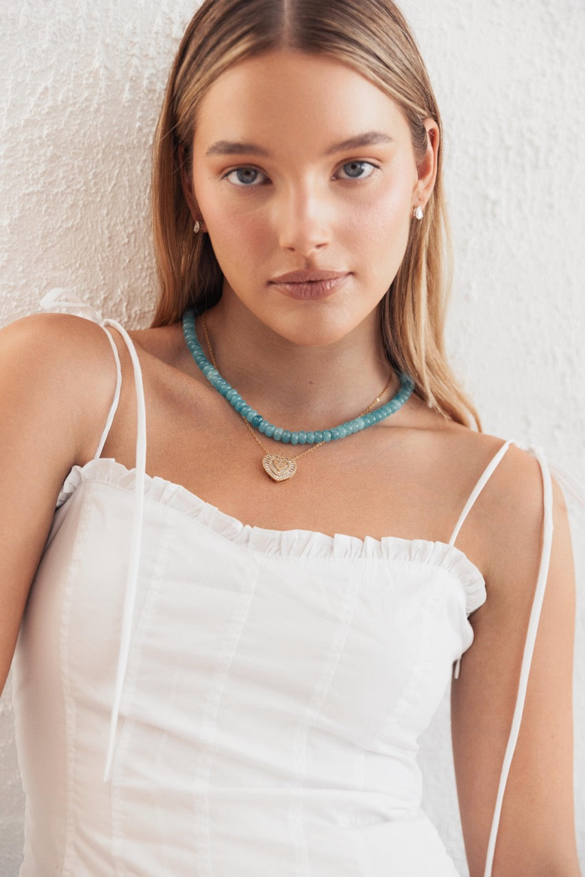 Crafted with care and made to last, this is the perfect piece to wear alone for a pop of colour or layered with your everyday favourites. Whether styled with linen by the sea or polished pieces in the city, the Capri Necklace adds an instant touch of refined summer energy.