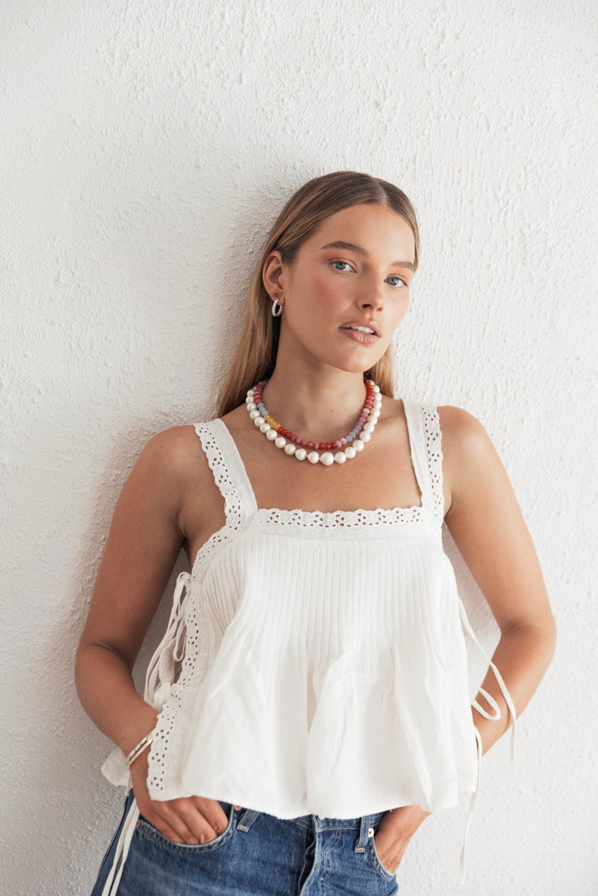Crafted with care and made to last, this is the perfect piece to wear alone for a pop of colour or layered with your everyday favourites. Whether styled with linen by the sea or polished pieces in the city, the Ravello Necklace adds an instant touch of refined summer energy.