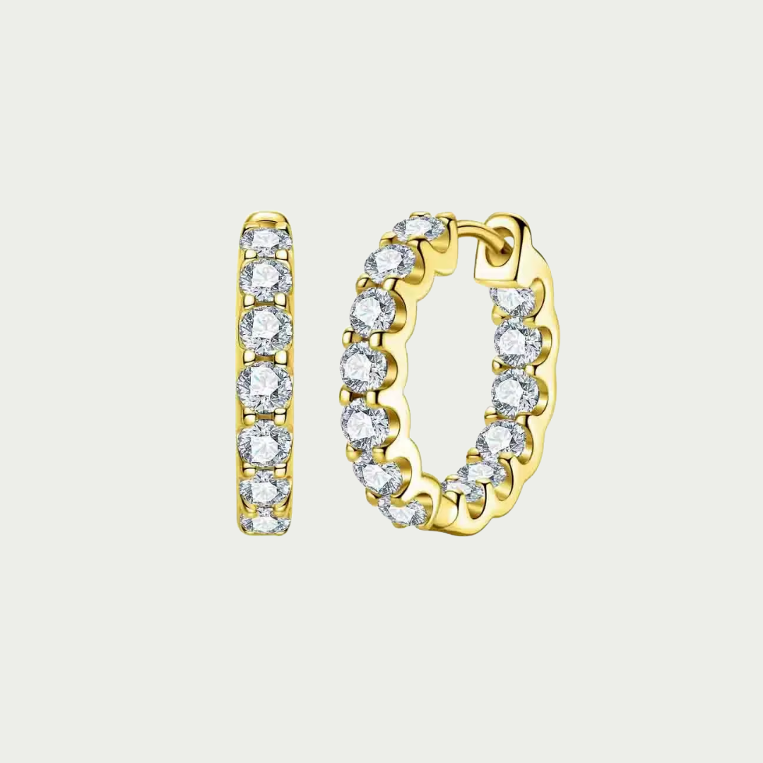 Elevate your everyday with the effortless brilliance of the Ruby earrings. Crafted in a radiant 18K gold plating and adorned with a continuous row of moissanite round brilliant cut stones, these earrings are the perfect balance between timeless elegance and modern glamour.