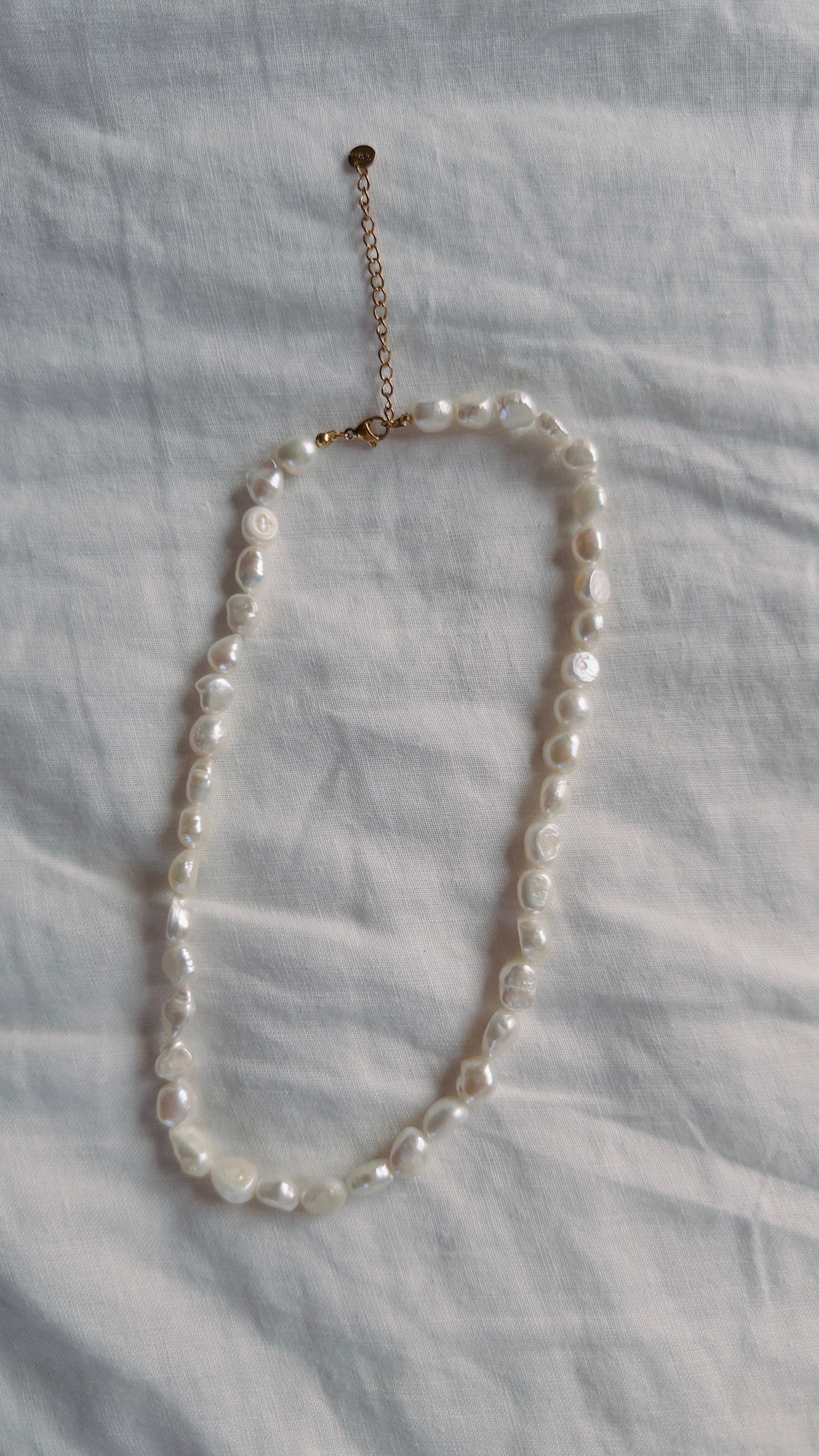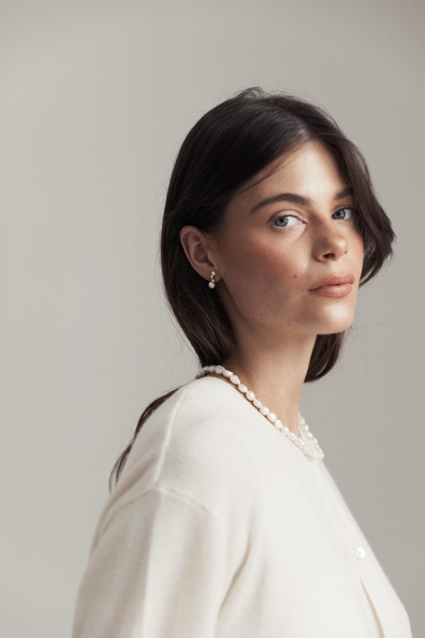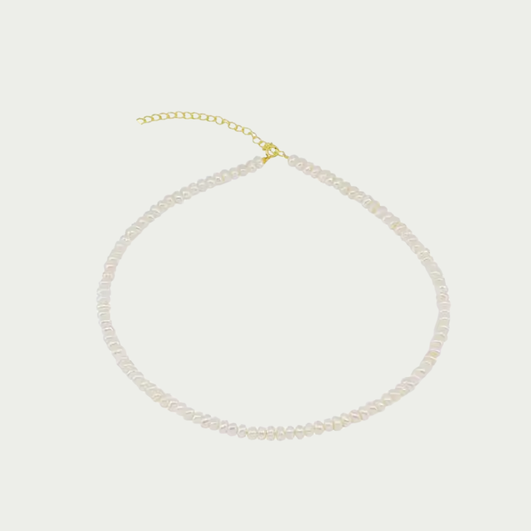 Delicate, refined, and endlessly versatile—the Angie necklace is your layering essential. Featuring dainty freshwater pearls strung in a fine, graceful silhouette, this piece is the perfect base for building your layered look. Each pearl is naturally unique, adding soft femininity to any outfit.