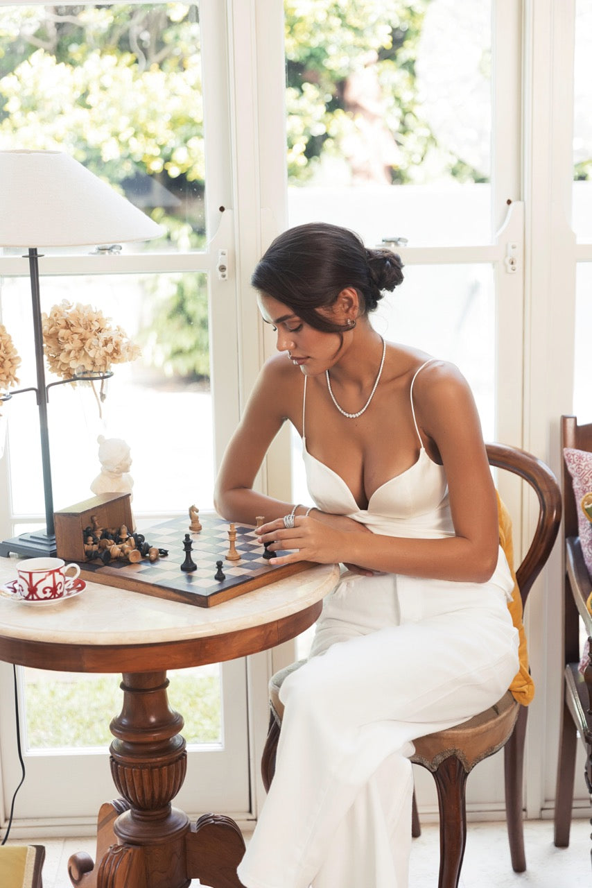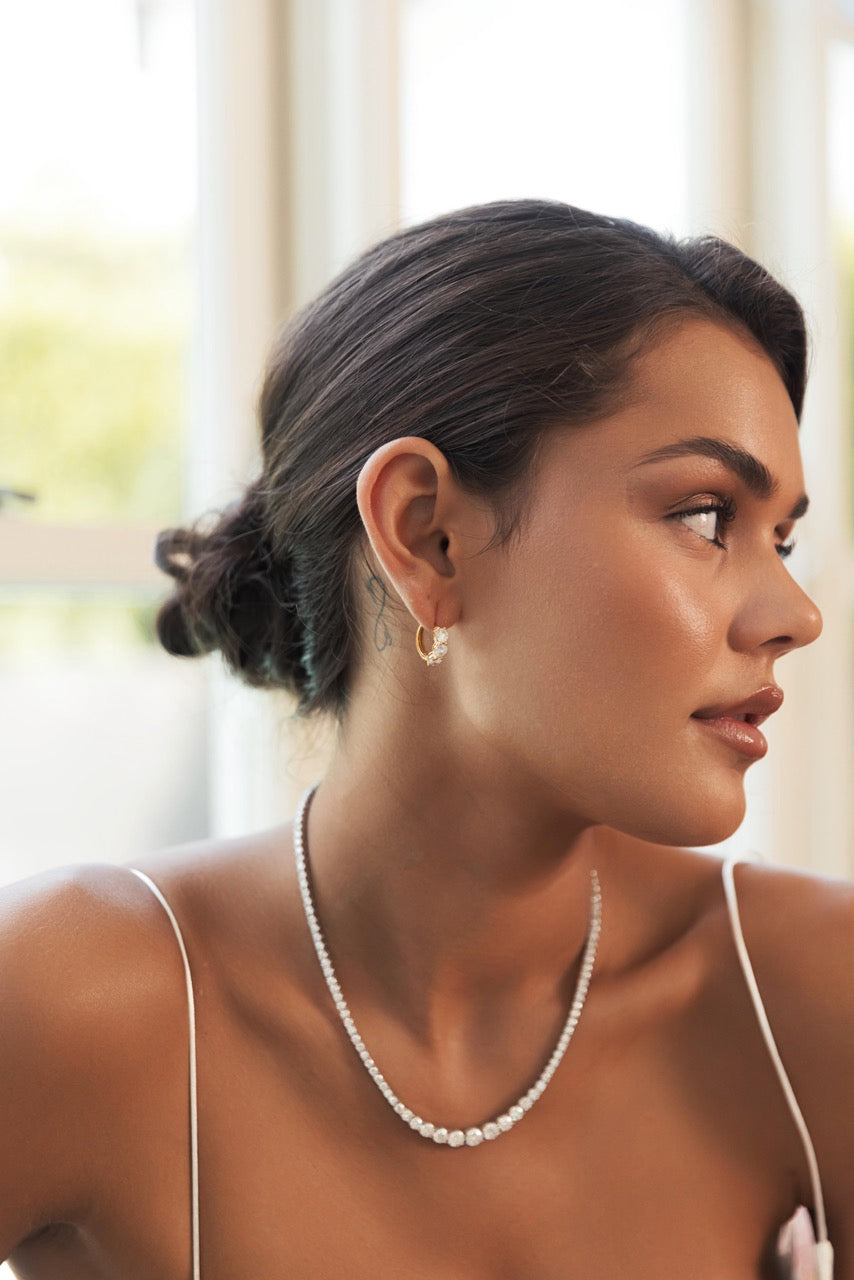 A graduated rivière is one of jewellery's oldest silhouettes — stones ascending in weight toward the centre, designed to follow the natural line of the décolletage. The Rivière Tennis Necklace honours that heritage with stones that graduate from 3mm at the shoulder to 6.5mm at the centre, building toward a quietly commanding focal point and creating movement and brilliance that shifts with you.
